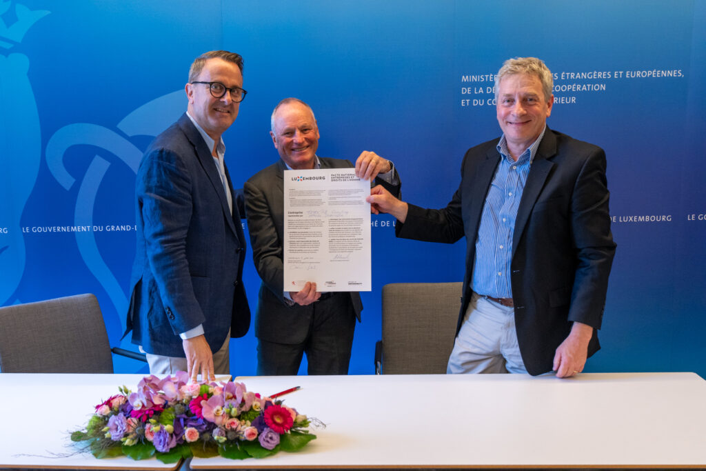 Une cérémonie officialisant la signature s’est déroulée en présence du Vice-Premier ministre, ministre des Affaires étrangères et du Commerce extérieur, Xavier Bettel, ainsi que de Fernand Ernster, président de la Chambre de Commerce et représentant de la House of Sustainability, qui accompagne les entreprises luxembourgeoises dans leur transition vers un modèle plus durable.